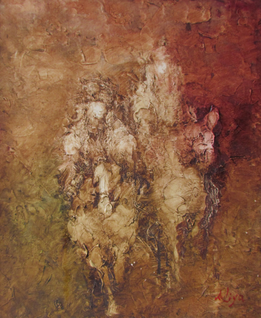 阿里娅(刘英),蒙古族,70后出生于内蒙呼和浩特市,1988年就读于呼和浩特市第二职业高中油画科。1992年就读于内蒙古艺术学院并开始参加展览。风景创作《兴安小屋》发表。1995年在北京成立无鼎之地工作室进行绘画创作。1999年开始多次参加国际艺术博览会,作品《四分之三音符》,《驰》等被收藏家收藏,被中国著名画廊关注并有意签约。2002年开始与英国壁纸公司进行绘画合作。2006年在北京七九八艺术区做展览,并成立元朝艺术中心。2007年参加中国美术家慰问内蒙古政协庆祝自治区60周年华诞《绿原如画》首发式。作品《蒙古人》被乌兰夫纪念馆收藏。(图片点击放大还原)