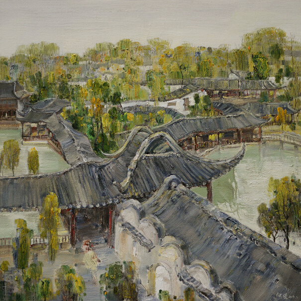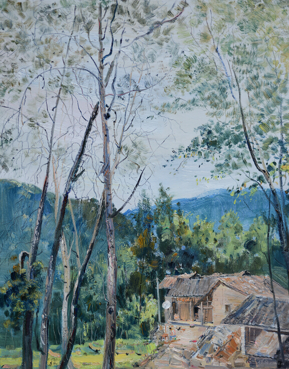 何强,1959年生,重庆市人,1985年毕业于西南师范大学美术学院油画专业本科毕业,获学士学位。2011年毕业于清华美院当代艺术创作研究生班。重庆工商大学艺术学院客座教授,四川美术学院油画风景写生导师。1990年作品《老井》入选中国首届油画精品大赛,2011年作品《雨后印象》参加第15届重庆市美术书法摄影联展获一等奖。2012年作品《飘来的白云》参加第二届中国油画写生作品展。2014年作品《搅》入选首届南京国际美术展。(图片点击放大还原)