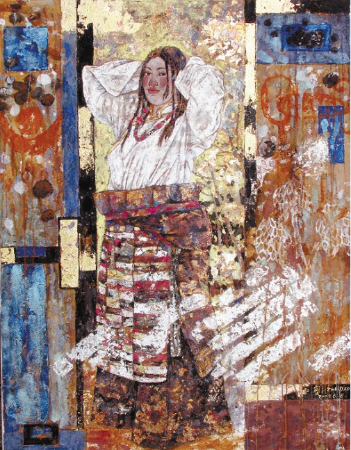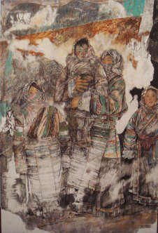 李知宝,1952年生,湖南江华人,瑶族,1976年毕业于湖南师范大学美术系后申请支边进藏,2001年结业于文化部重彩(岩彩)画高级研究班。现为中国美协会员、西藏美协副主席、西藏书画院副院长、拉萨市文联主席。西藏《拉萨晚报》社美术编辑。作品有《大人和小人》、《谁的首饰美》、《未装完的水塔特提斯古海风景》等。作品曾参加第六届、八届、九届全国美展等大型展览并获奖。其中《待归图》获全国首届民族画展佳作奖,《草原纪事》获1991年西藏美展一等奖和建党70周年全国美展铜奖,《走过圣湖》获第三届全国民族省区美展银奖,《人神之间》获加拿大第二届国际水墨画大展枫叶奖,《远古时代的一个美好下午》获第二届中国岩彩画展银奖,《小卓玛》获第三届“民族百花”全国美展银奖等。2001年被中国美术家协会和中国少数民族美术促进会授予“杰出民族美术家”称号。 图片点击放大还原)